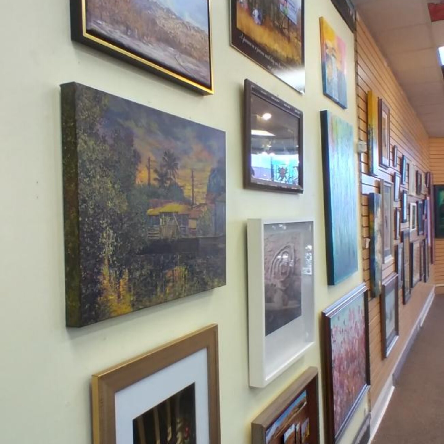 Our full-service frame shop offers the largest selection of wood and metal frame options available that can be custom made to any size from mini to extra-large. Bump up your presentation with a custom-cut mat or Museum glass for that extra special touch.