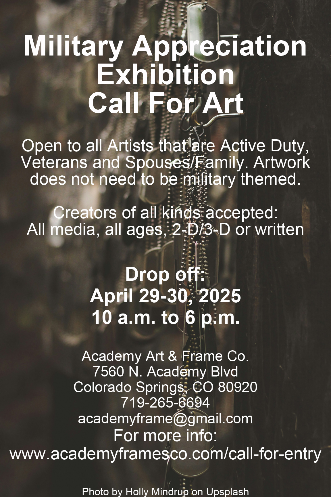 We want to honor you for Military Appreciation Month by showcasing your artistic talents! All media 2D/3D, musicians and written works accepted!