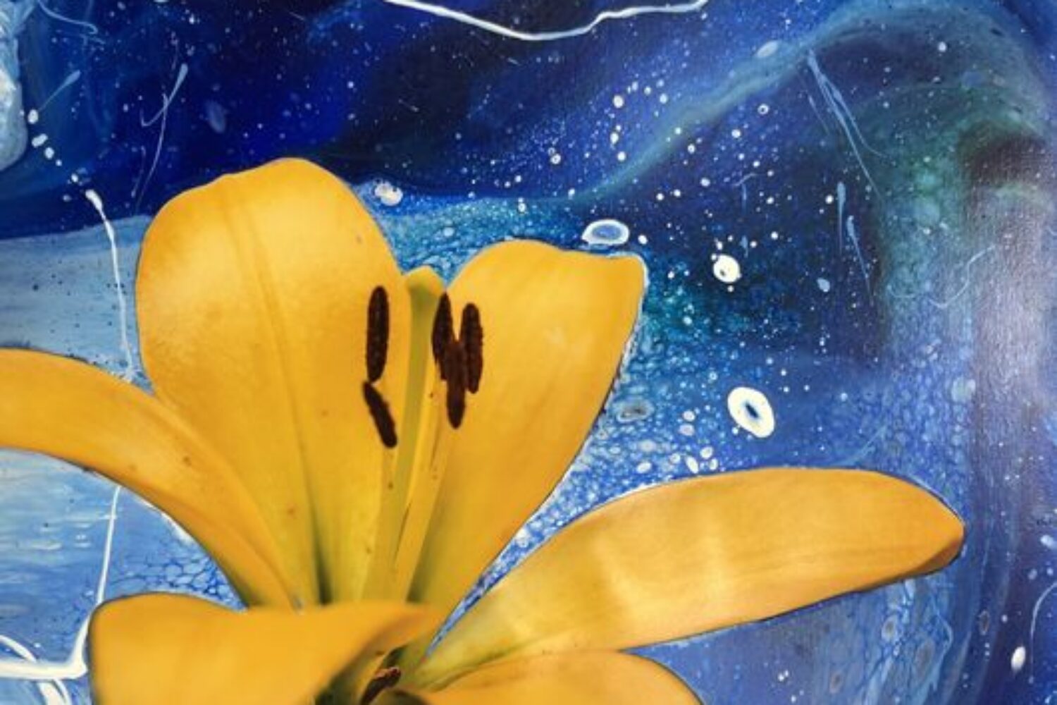 Linda Bridges and Cas Foste are presenting a duo exhibit of embellished liquid acrylic pours. Linda is a children’s book author and illustrator, art instructor, and water-colorist. Cas works mostly in photography but loves multimedia with her photography, and she has worked in printmaking and dabbled in stained glass.
